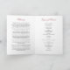 Elegante programa de funeral com um clássico fundo branco, florais rústicos cor-de-água rosa, uma foto da pessoa que faleceu, os detalhes do funeral, um obituário, a ordem de serviço e uma nota personalizada de agradecimento nas costas.