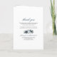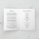Elegante programa de funeral com um clássico fundo branco, florais rústicos de cor azul-d'água, uma foto da pessoa que faleceu, os detalhes do funeral, um obituário, a ordem de serviço e uma nota personalizada de agradecimento nas costas.