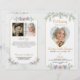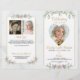 Crie seu próprio programa de funeral dobrado, personalizado às suas necessidades, com 4 fotos, uma em forma cardíaca no cobrir, verde-aquarela e flores roxas e cor-de-rosa com realces tipográficos elegantes de script de caligrafia e cruzes em uma cor dourada contra um fundo macio e verde-aquoso. ASSISTÊNCIA: para obter ajuda com a modificação ou personalização do design, alteração de cor, transferência do design para outro produto ou você gostaria de coordenar itens, entre em contato com o designer ANTES DE ENCOMENDAR através da guia MENSAGEM de bate-papo Zazzle abaixo ou envie um e-mail para makeitaboutyoustore@gmail.com.