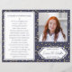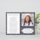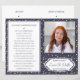 Este elegante programa de cerimônia memorial com foto de bolinhas azuis marinho e douradas é uma maneira bonita de lembrar um ente querido durante o serviço de celebração de vida. Uma vez que você os receba, basta dobrá-los ao meio e oferecê-los aos convidados da cerimônia.
