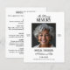 Programas clássicos de celebração da vida em preto e branco com um grande retrato centralizado e layout estruturado da ordem de serviço, oferecendo uma homenagem atemporal e digna para serviços memorial. Este design de programa de funeral acessível apresenta uma foto colocada de forma proeminente, emoldurada por fontes serifadas e cursivas refinadas, com texto totalmente editável. A paleta monocromática e o título em negrito criam um tom formal, mas acessível, tornando-o ideal para homenagear seu ente querido com graça. A parte posterior inclui um modelo claro e organizado para a ordem de serviço. Este layout minimalista e elegante é perfeito para famílias que buscam um programa de funeral baseado em fotos, projetado profissionalmente, que combina beleza, funcionalidade e personalização sincera em uma só peça.