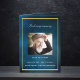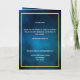 Um elegante programa de 4 páginas. Um céu azul escuro como fundo, uma falsa estrutura dourada e espaço para a sua foto na frente. Personalize e adicione nome, datas e texto. Texto branco.