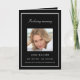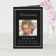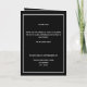 Um elegante programa de 4 páginas. Um fundo preto, uma moldura prateada falsa e espaço para sua foto na frente. Personalize e adicione nome, datas e seu texto. Texto branco.