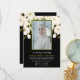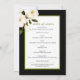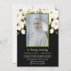 Este design do Programa Memorial Floral apresenta rosas brancas em aquarela e folhagem verde em um fundo simples com texto elegante verde e preto. Adicione foto na moldura de folhagem. O verso deste programa é preto com flores brancas chiques, moldura de folhagem com ordem de serviço de funeral.