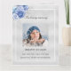 Um elegante programa de 4 páginas. Um fundo falso prateado, quadros falsos prateados, flores azuis claras, florais, espaço para sua foto na frente. Personalize e adicione nome, datas e texto.