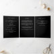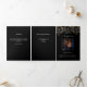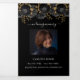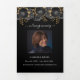 Um elegante programa triplo. Um fundo preto clássico, florais pretos e ouros e espaço para uma foto. Personalize e adicione nome, datas e texto.