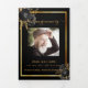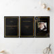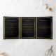 Um elegante programa triplo. Um fundo preto clássico, uma falso estrutura dourada, florais pretos e espaço para sua foto. Personalize e adicione nome, datas e texto.