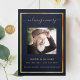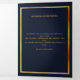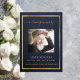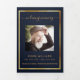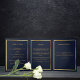 Um elegante programa triplo. Um fundo azul escuro, uma falso estrutura dourada e espaço para sua foto. Personalize e adicione nome, datas e texto.