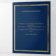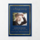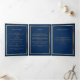 Um elegante programa triplo. Um fundo azul marinho, uma falso estrutura dourada e espaço para sua foto. Personalize e adicione nome, datas e texto.