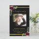 Um elegante programa de 2 páginas. Um fundo preto, uma falso armação de ouro, florais burros e espaço para a sua foto. Personalize e adicione nome, datas e texto.