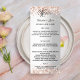 Personalize e adicione seus nomes, a data do casamento, o menu e o programa noturno. Um fundo com aspecto de prata falsa, com um confete de ouro rosa. Texto preto.