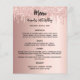 Por favor, note que este menu e programa estão em papel folheto e muito finos. Para menus/programas mais espessos (mesmo design) visite nossa loja. fundo de gradiente rosa dourado. Texto preto. Decorado com pingos, pintura pingando aparência. Frente: personalize e adicione seu nome, data e menu. Voltar: Programa. Se você tiver um grande programa, poderá reduzir o espaçamento entre linhas.
