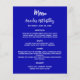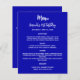 Um fundo azul real. Texto branco. Frente: personalize e adicione seu nome, data e menu. Voltar: Programa. Se você tiver um grande programa, poderá reduzir o espaçamento entre linhas. 1 folha = 1 menu impresso borda a borda.