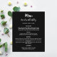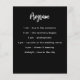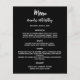 Um clássico fundo negro. Texto branco. Frente: personalize e adicione seu nome, data e menu. Voltar: Programa. Se você tiver um grande programa, poderá reduzir o espaçamento entre linhas. 1 folha = 1 menu impresso borda a borda.
