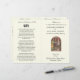 Com uma bela imagem do casamento da Virgem Maria e São José. Nossos programas dobrados são muito úteis para que seus convidados saibam a ordem da Missa Latina Solene e quando sentar, levantar e ajoelhar. Se você estiver tendo uma Missa Baixa, você precisará alterar o texto de acordo. Você também poderá adicionar as seleções musicais que você escolheu para o seu dia especial! (POR FAVOR, NOTE: A peça musical que a noiva e o noivo saem da igreja ao final da Missa é chamada de RECESSIONAL. Está listada como PROCESSIONAL no programa de exemplo. Você precisará alterar esse texto.) A imagem na frente apresenta uma imagem vintage da Virgem Maria e São José trocando seus votos de casamento. O verso do programa tem uma bela oração para a noiva e o noivo. Três corações acima da oração representam Jesus, Maria e São José. O interior inclui uma oração para lembrar os entes queridos que faleceram e um agradecimento a todos que compareceram. Como sugestão, eu recomendo um belo livreto que contém toda a Missa de Casamento, bem como a Cerimônia de Casamento e o Rito de Esponsais. Isso está disponível em latim e inglês, com instruções antes e depois da cerimônia de casamento. Eles podem ser adquiridos através da Angelus Press. https://angeluspress.org/products/marriage-mass-booklet. Pergunte à sua paróquia se eles já têm esses livretos disponíveis.