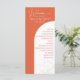 Um programa de casamento moderno em cor de laranja brilhante e branco simples. Esta sombra de laranja chama-se Verona Sunset. Detalhes em ouro falso, uma silhueta de uma flor delicada. Tipografia moderna e detalhes design das formas arquivadas.
