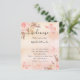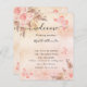 Um programa de casamento moderno e elegante, linha do tempo. Fundo laminado, rosa, de gradiente dourado, decorado com erva-pampas e flores, rosas e borboletas cor-de-rosa pincelada. Personalize e adicione seus nomes e detalhes do casamento. Letras pretas coloridas. Se você tiver mais texto, é possível reduzir o espaço na linha.