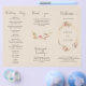 Este folheto triplo é designado para a longa cerimônia, ele apresenta uma coroa floral pintada manualmente com aquarelas para um casamento com temas boho. texto é facilmente editável clicando no botão personalizar.