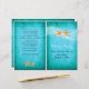 Cerimônia de núpcias e turquesas tropicais de destino de praia de Starfish, e programa de dobragem de festas com um casal de estrelas de laranja num véu branco ondulado em azul-turquesa e fundo vermelho-forte. Esta design de casamento aqua moderna faz parte de um casamento ou coleção de casamento e é uma modelo perfeita para um casamento de verão na praia de destino. Você terá que dobrá-lo no centro. Escolha apenas este tipo de valor de papel à medida que ele se dobra bem.