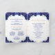 Este elegante e glamouroso programa Quinceañera apresenta uma bela princesa com cabelo escuro num vestido azul escuro de bola. O texto combina o script manuscrito e as fontes sans serif modernas para um aspecto elegante e sofisticado. Os arranjos florais e o confete de ouro criam a mistura perfeita de rústicos e quicos. Gráficos por www.etsy.com/uk/shop/SunflowerDayLove