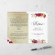 Este elegante programa da quinceañera apresenta flores e folhagem lindíssimas numa combinação de tons vermelhos, dourados, amarelos e cor-de-rosa pálido. Utilização de detalhes caligráficos modernos. Os lados esquerdo (que uma vez dobrados se tornariam os lados traseiro e dentro esquerdo) com uma textura elegante de ouro. Personalize o programa em ambos os lados, adicionando qualquer detalhe ou mensagem que você quiser, o nosso é simplesmente e exemplo. Também disponível em espanhol. NOTA: este programa chegará plano e requer o dobramento no meio para montagem. O programa de valor padrão é recomendado.