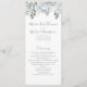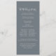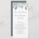 Uma longa e fina cerimônia de noivado, modelo de serviço. Esta design apresenta um programa azul empoeirado de cerimônia de casamento, com um design botânico floral, poeirento, com roteiro de caligrafia, uma elegante, simples, ordem de serviço