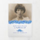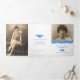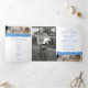 Programa Funeral Ordem de Serviço Gatefold Floral Esquece-me, não flores, programa de funeral em branco, azul, com toques de amarelo e verde em papel branco. Basta substituir o texto de exemplo e os porta-fotos por suas próprias fotos e detalhes de informações especiais. Desenho original em tinta e trabalho de arte de aquarela e design por Sarah Trett para www.mylittleeden.com (fotos são apenas imagens marcadoras para você substituir por suas).