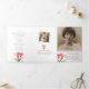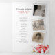 Programa funerário de serviço de dupla face vermelho-coral laranja-primavera crocus floral botânico de arte de aquarela floral. Substitua o texto de exemplo e nove fotos com marcadores de posição por suas próprias fotografias especiais, ordem de serviço memorial, obituário, leitura ou poema, e reconhecimentos, e outros detalhes de informações pessoais, conforme necessário. Pintor de flor de croco com aquarela original e design por Sarah Trett para www.mylittleeden.com (as fotos são apenas imagens marcadoras para você substituir por suas próprias fotos especiais).