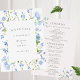 Programas de casamento planos elegantes com uma delicada estrutura floral de aquarela em azul e branco. Personalize com os detalhes da sua cerimônia nas cinzas.
