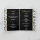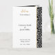 Melhore seu dia de casamento com nosso Programa de Dia de Casamento de Fronteira de Folhagem, parte da coleção de convites para casamentos de Padrões de Pão de Chico. Esta placa formatada em retrato dobrado apresenta um cobrir branco com uma borda de folhas preta dominante. Dentro, a cor é revertida com um campo de texto preto, fornecendo espaço para detalhes do evento e informações do participante. Insira seu texto para fazer com que ele reflita seu evento. E personalize as cores usando o link de edição. Conheça mais temas de casamento em www.KBMD3signs.com. Para obter informações personalizadas sobre design, entre em contato conosco em info@KBMD3signs.com.