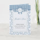 Esta programa do casamento ou ordem enchanting de serviço nas máscaras de ligas azuis pálido uma banda listrada corajosa e uma versão moderna da cor damasco do vintage para criar o fundo. Um retângulo azul pálido com sombra fraca da gota dá a ilusão de uma dupla camada em cima de que o texto é adicionado. À parte dianteira do programa, um ornamentado, quadro do scrollwork do vintage abrange monogramas dos noivos. Os artigos de harmonização e as cores alternativas estão disponíveis na loja.