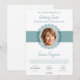 Honre seu ente querido com este modelo de programa de funeral elegante e personalizável. Com uma paleta de cores azul-teal e branco atemporal, uma moldura circular para retrato e tipografia sofisticada, este layout fácil de editar permite personalizar detalhes do serviço, datas e tributos sinceros. Crie um souvenir profissional e de alta qualidade que celebre lindamente uma vida bem-vivida e forneça um guia significativo para familiares e amigos durante o serviço memorial.