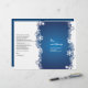 A cerimônia de casamento e o programa de festas de neve, azul e branco, no estilo de folhetos dobrados do inverno moderno, apresentam uma borda branca de flocos de neve sobre fundo azul brilhante. Uma escolha perfeita para um casamento no inverno de dezembro. Você terá que dobrar no centro para ter um programa dobrado. Escolha apenas o tipo de papel de valor à medida que ele se dobra bem.