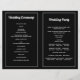 Cerimônia floral de flores negras e brancas venenosas e programa de estilos de folhetos dobrados para festas. Esta adorável design apresenta uma antiga borda floral branca preta em fundo preto e branco. Você terá que dobrar no centro para ter um programa dobrado. Escolha apenas este tipo de papel à medida que ele se dobra bem.