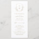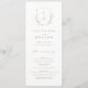 Iniciais monogramas emolduradas por folhas botânicas elegantes e ilustradas à mão, detalhes do seu evento em uma escrita elegante e fonte clássica, simples e luxuosa. Excelente faux gold e programas brancos para casamento clássico moderno, casamento formal simples, casamento elegante de jardim botânico. Veja todas as peças correspondentes na coleção.