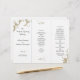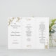 O triplo programa de casamento branco com folhas de ouro floresce. Personalize com texto preto em três seções, que serão as seções frontal, ordem de cerimônia e festa de casamento. Em seguida, dobre o estilo de acordeão / z- vezes / triplo, após a compra. NOTA: mudar o tipo de papel pode dificultar a dobradura.