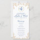 Design de folha de ouro simples e elegante perfeito para seu esquema de cor de ouro e marinho com a fonte tradicional de script. Todas as informações de casamento e detalhes de festa de casamento estão listados neste programa, assim como um lugar especial para se lembrar de pessoas amadas que não estão mais com noiva e noivo no dia do casamento.