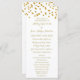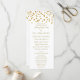 Programa de casamento personalizado em um padrão de confete com efeito glamouroso de ouro. Personalize esta ordem de cartões de cerimônia com o seu próprio texto. (note que o efeito de brilho é apenas impressão.)