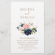 Felicite seu casamento clássico com este programa de casamento de flores cor-de-rosa-azul-dourada. A design apresenta aquarela e flores azuis, rosa e verdes desenhadas à mão em belos buquês.