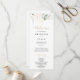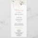 Este programa de casamento de caligrafia verde-dourada é perfeito para um casamento rústico. Este design artístico apresenta a aquarela desenhada à mão, ouro e folhagem verde, inspirando beleza natural.