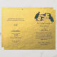 Programa de Casamento de Peacock Dourado com Pavões Azuis e iniciais de monograma impressas em folha de ouro impressa. por Elke Clarke© para BlissfulWedding em Zazzle. A dobrar é necessária após o recebimento. Use a opção "PERSONALIZAR TI" para editar texto e alterar o espaçamento, etc.