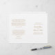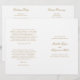 Programa de casamento dobrado ao estilo tradicional com um simples design com seus nomes e os cabeçalhos em uma caligrafia elegante. A frente tem seus detalhes de eventos, a dentro tem sua festa de casamento e ordem de cerimônia. O verso tem um modelo para a sua mensagem / aspas. Este estilo clássico de ouro e design branco é perfeito para um casamento formal. Estes programas de casamento baratos são impressos em folhas de papel para uma opção econômica.
