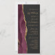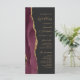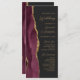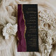 A borda esquerda deste elegante programa de casamento moderno apresenta uma cor-d-água vermelha borrifada, aparada com falsa brilho dourado. O texto personalizável combina o script de caligrafia dourada e sans serif fonts em um fundo escuro.