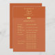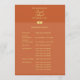 O programa de casamento Terracotta e Gold inclui a festa de casamento e a ordem de serviço. Design elegante com terracota e cores douradas. Personalize o texto na parte frontal e traseira do programa. Excelente dia de papelaria e perfeito para casais usando terracota como cor de casamento. Use a modelo para criar seu próprio programa de casamento de terracota e ouro.