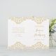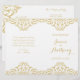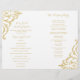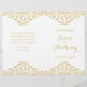 Este elegante programa de casamentos vintage apresenta um delicado embelezamento damasco de ouro sobre fundo branco. Perfeito para um glam vintage ou um casamento com o tema da arte. Este tamanho deve ser dobrado ao meio como um livreto. O papel não vem com perfuração.