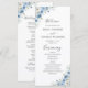 Dusty Blue Ivory Wedding Program. Este na moda e elegante Convite para Chá de Casamento apresenta uma linda coloração d'água pintada manualmente Dusty Blue Ivory Floral. Localize itens correspondentes na Coleção Floral de Marfim Azul empoeirada.