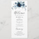 Dusty Blue Marinho Floral Rustic Watercolor Program. Programa de casamentos florais, azuis e marinhos, com lindas flores pintadas à mão e buquê verde com moderno roteiro caligráfico. Itens correspondentes disponíveis.