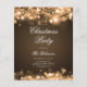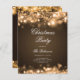 Convite para Festa de Natal Elegante com Programa e Menu que apresentam Luzes de Natal em Dourado.