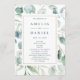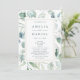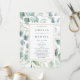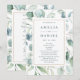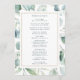 Este programa de cerimônia de núpcias apresenta cores d'água eucalipto e folhas verdes botânicas com uma estrutura retangular de ouro. Para personalização mais avançada deste design, clique no link Personalizar mais para alterar a fonte, o tamanho e a cor.