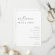 This elegant wedding program features a minimalist design with clean lines and ample negative space, creating a sophisticated and formal aesthetic. The color palette is simple, utilizing black text on a white background for high contrast and readability. The typography includes graceful cursive script for the welcoming message and bold serif fonts for the names and ceremony details, enhancing the visual hierarchy. Perfect for couples seeking a classic and timeless look, this program captures the essence of elegance and simplicity, making it ideal for any formal wedding occasion.
